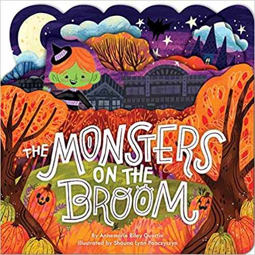 A group of young monsters delight in a midnight flight in this bouncy Halloween celebration to the tune of “The Wheels on the Bus.” A rich and moody color scheme perfectly captures the feel of a crisp fall evening. Cheerful little monsters tour their town by broom, on die cut pages that build as they explore, leading up to a group ride and wishes for a “Happy Halloween!”