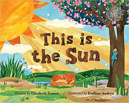 A vibrant geometric sun shines its rays on the undulating earth below. Thus begins this brilliant and bouncy circle of life story told as a cumulative tale to the rhythm of “The House That Jack Built.” Moving from the sun, to the tree, to the flower, and so on Everett walks readers though the tale with simple text, easily digestible by preschool story times or early independent readers. Lush, full-color, digital collage illustrations complement the spare text. With text to the left of the spread and full-page illustrations to the right, Andrya layers in each new element of the story and introduces a seek-and-find component. Can you find the bug, on the leaf, on the tree? The text and art are both reminiscent of Eric Carle’s Very Hungry Caterpillar. This familiar format, combined with the cadence of a well-known nursery rhyme, lends the nonfiction text to story time in a way most NF does not. Adding to its utility, the book will be available in both English and Spanish, with teacher resources available on the publisher’s website after publication.